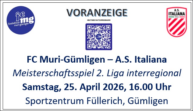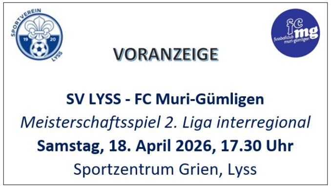 Samstag, 11. April 2026, 16:00 Uhr – Sportzentrum Füllerich, Gümligen2. Liga interregional: FC Muri-Gümligen – [...]