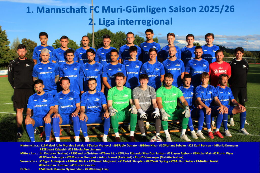 Kader 1. Mannschaft (2. Liga interregional) Saison 2025/26 – Rückrunde 1. Mannschaft FCMG2. Liga interregionalSaison 2025/26Vorrunde Vergrösserung = Klick auf Bild Teilen mit: Einen Link per E-Mail an einen Freund senden (Wird in neuem Fenster geöffnet) E-Mail Drucken (Wird in neuem Fenster geöffnet) Drucken Auf Facebook teilen (Wird in neuem Fenster geöffnet) Facebook Auf X teilen (Wird in neuem Fenster geöffnet) X Unsere Hauptsponsoren